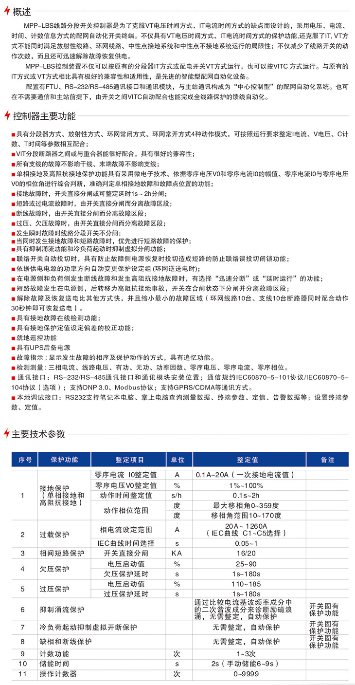 MPP-LBS線路分段開(kāi)關(guān)控制器(菜單設(shè)定方式)